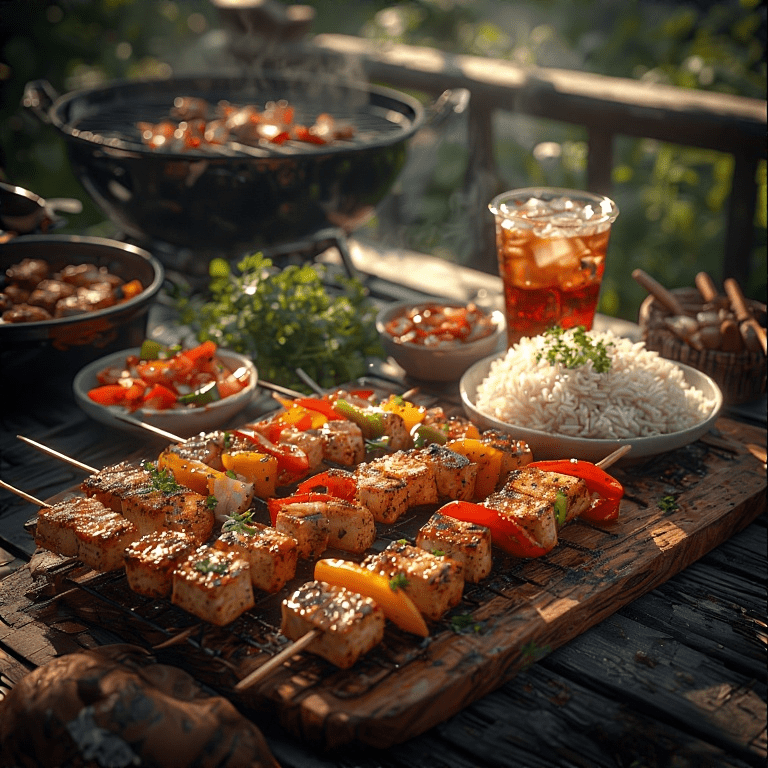 These plant-based skewers are a trending recipe, ready in 20 minutes with bold BBQ flavor. Press firm tofu to remove water, cube, and marinate in BBQ sauce with a touch of soy sauce.