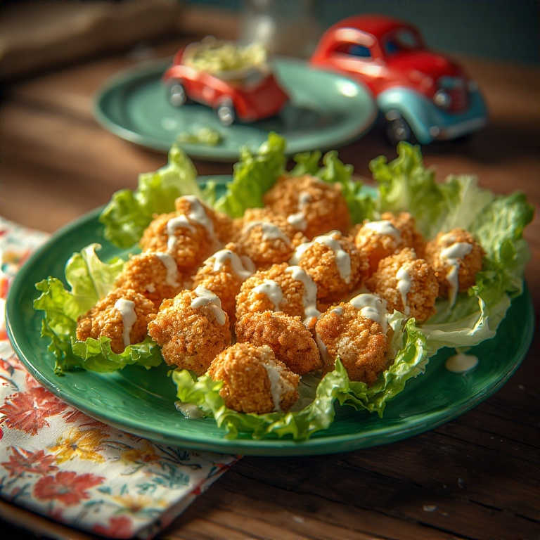 How to Make: Bake chicken nuggets, serve in lettuce leaves with ranch. Serves 4.