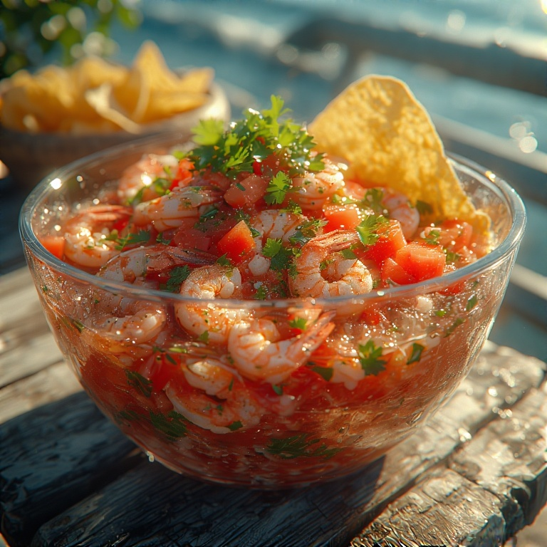 How to Make: Mix shrimp, lime juice, tomatoes, and cilantro. Chill for 10 minutes.