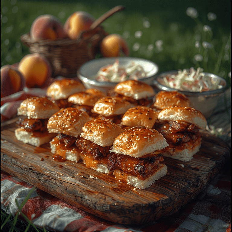 How to Make: Grill pork, toss with peach BBQ sauce, serve on slider buns.