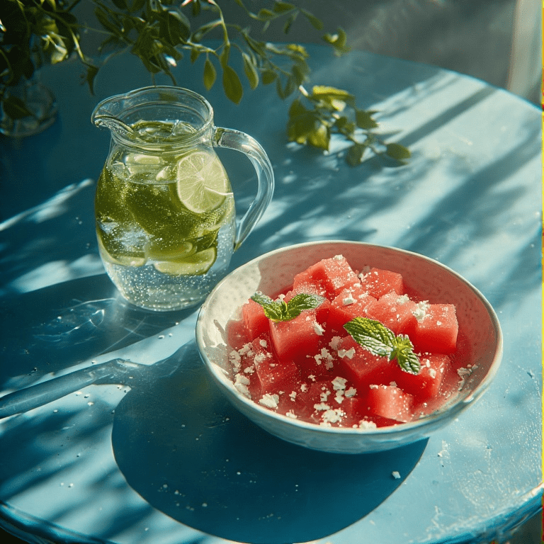 This sweet-salty salad is ready in 10 minutes, perfect for heatwaves. Watermelon hydrates, with 92% water content.