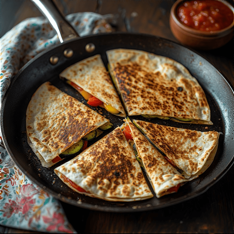 How to Make: Grill zucchini and peppers, layer with cheese in tortillas. Cook 3 minutes per side.