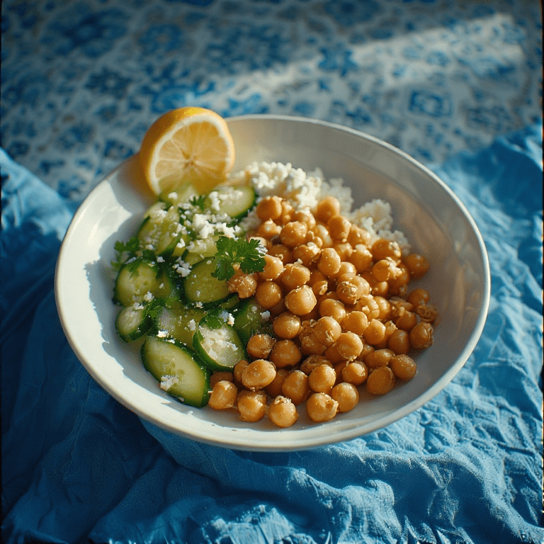 How to Make: Combine chickpeas, cucumber, feta, and lemon dressing.