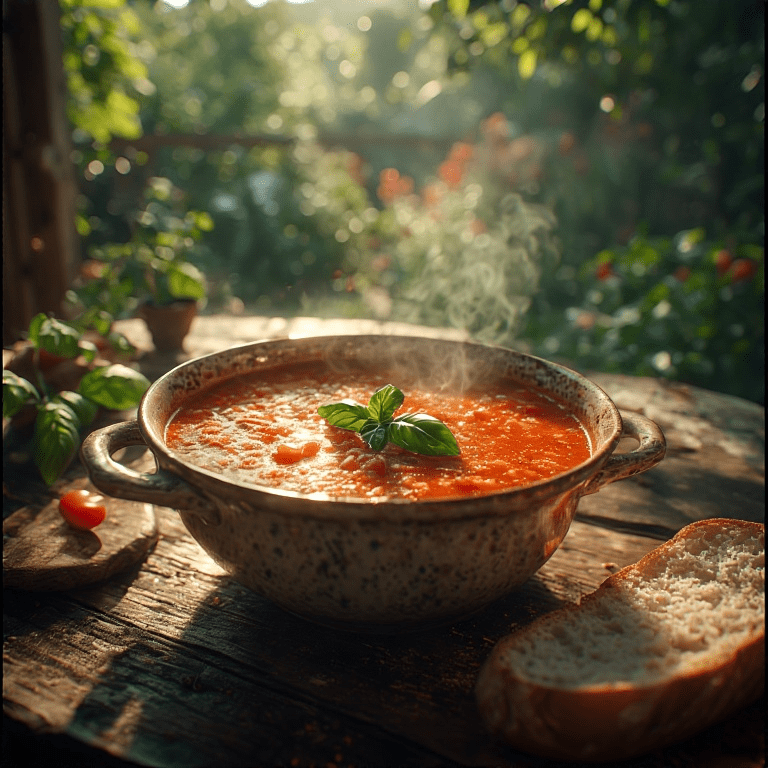 How to Make: Simmer canned tomatoes, garlic, and basil. Blend and serve with bread.
