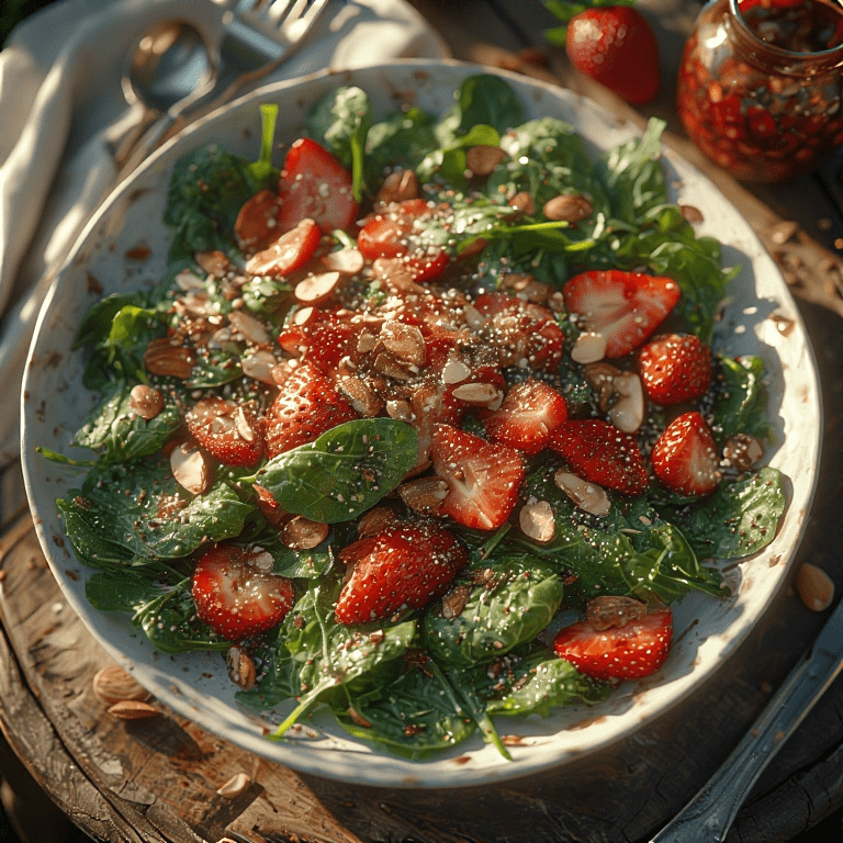 How to Make: Toss spinach, strawberries, almonds, and balsamic dressing.