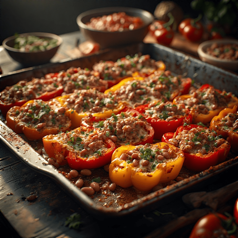 How to Make: Slice peppers, top with cheese and beans, bake at 400°F for 10 minutes.