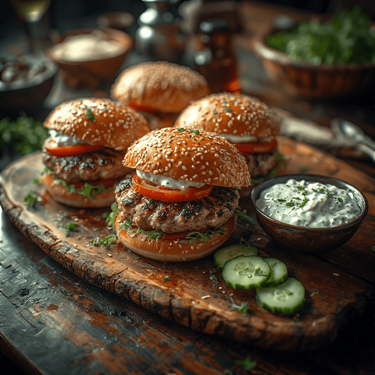 How to Make: Mix ground turkey with feta and oregano, grill, and serve on buns with tzatziki.