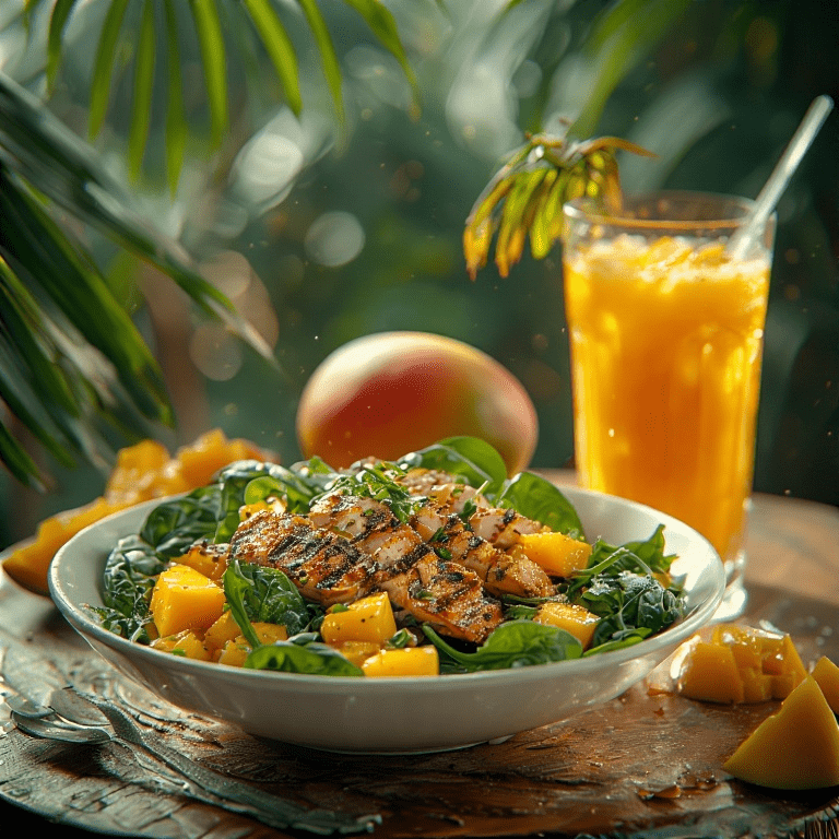 How to Make: Toss grilled chicken, mango, spinach, and honey-lime dressing.