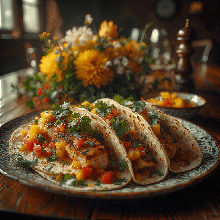Tropical fish tacos in 20 minutes. Fish is omega-3 rich. Few ingridient mix together give it mix taste with high flavor.