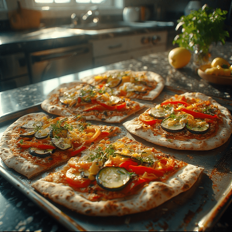 How to Make: Spread pita with tomato sauce, top with veggies and cheese. Bake at 400°F for 10 minutes.